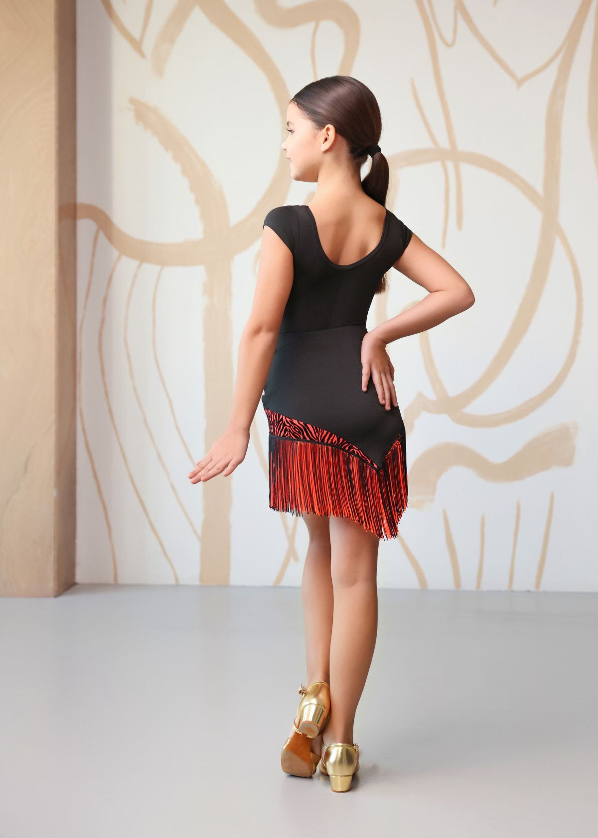 The RUMI Latin skirt from the BOUNCE BEAT collection features a bold, dynamic silhouette.Its asymmetric cut with a diagonal hemline creates a sense of motion even when standing still, while the shorter front section highlights leg lines and dance movements. The flocked mesh insert adds contrast, and the bright fringe along the hem enhances rhythm and volume with every turn.A soft elastic waistband ensures a comfortable and secure fit, combining elegance with performance functionality.CAREHand wash or gentle machine wash in cool water (up to 30°C).Do not bleach.Do not wring.Dry flat.Gentle steaming allowed.COMPOSITION90% micro-polyamide, 10% elastane.Decorative inserts — flocked mesh.
