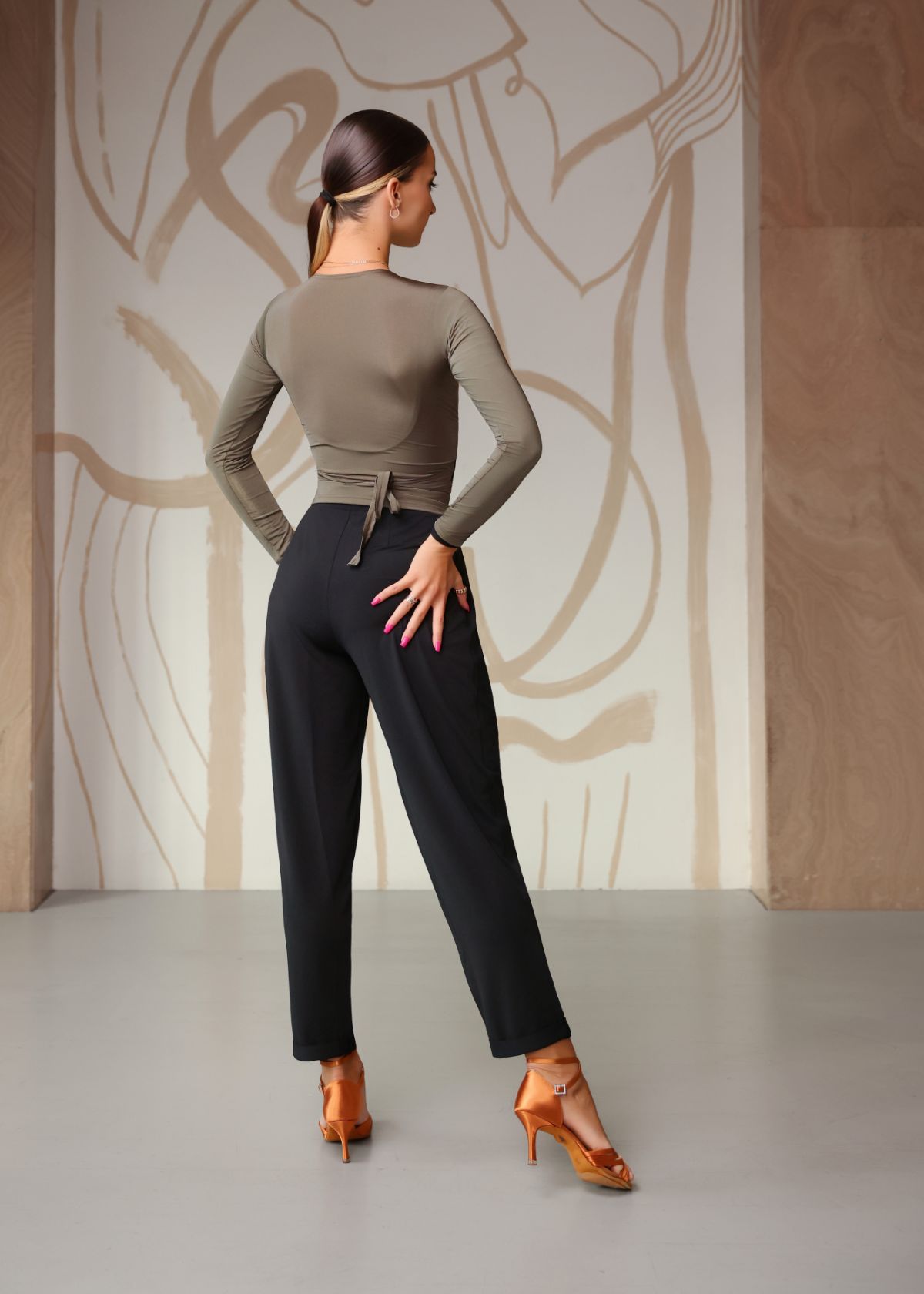 Trousers LIZA from the ICONIC collection — an elegant base model designed for training and rehearsals. Made from stretch crepe, they retain their shape perfectly, stretch softly, and provide full freedom of movement.Featuring a mid-rise fit with front pleats that elongate the silhouette, and ankle cuffs for a modern finish. The slightly elastic fabric ensures comfort even during active motion.Perfect for Latin, Standard, contemporary dance, and studio practice. Pairs beautifully with bodysuits and tops from the same collection.CAREHand wash or gentle machine wash in cool water (up to 30°C).Do not bleach.Do not wring.Dry flat.Gentle steaming allowed.COMPOSITION95% polyester, 5% elastane.