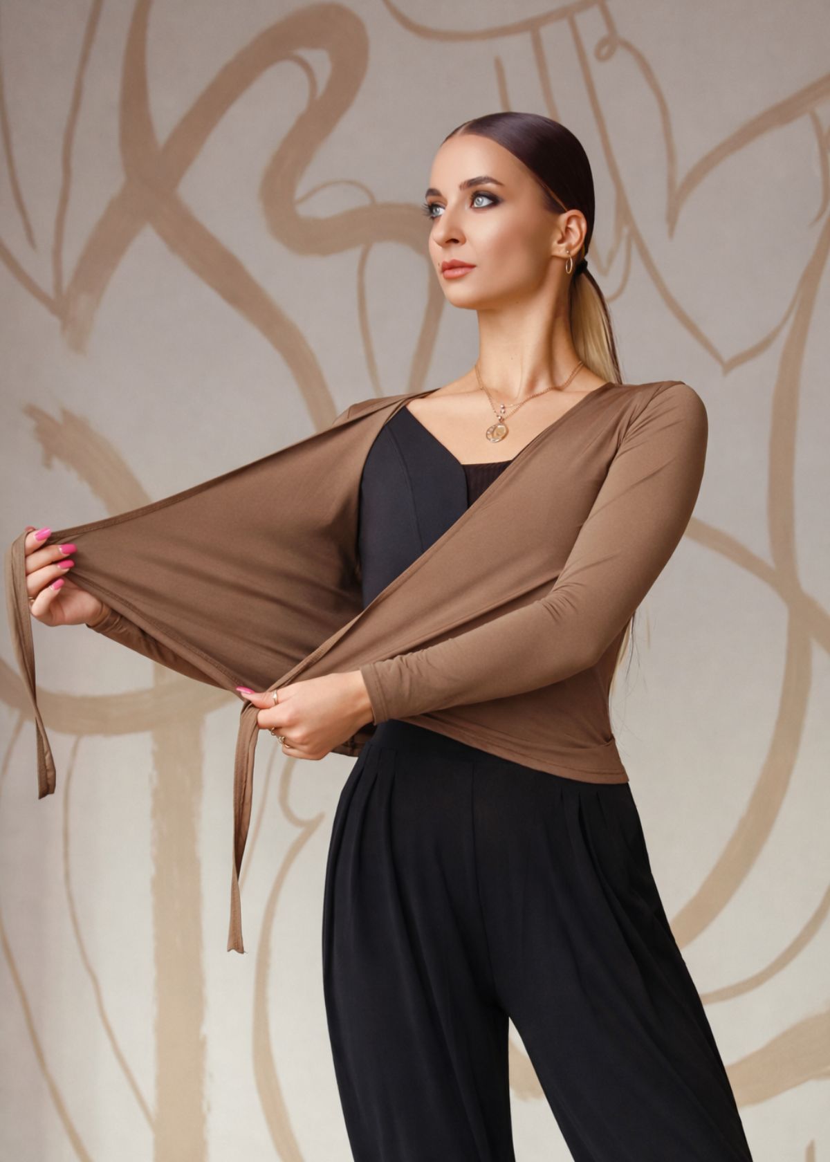 STASSI wrap long sleeve top from the REPLAY collection is designed for training and stage practice. Made of elastic micropolyamide, it fits close to the body, stretches well and does not restrict movement. The wrap construction creates a clean body line, highlights the waist and ensures a secure fit during active arm and torso work. The fabric is soft on the skin, breathable and keeps its shape with regular use.Suitable for: Dance training, ballroom dance, contemporary, warm-up, stage practice.CAREHand wash or gentle machine wash in cool water up to 30°CDo not bleachDo not wringDry flatGentle steaming allowedCOMPOSITION80% polyamide, 20% elastane.