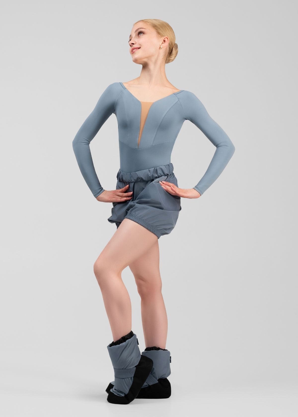 Sauna Shorts LESSON – a model from the LESSON collection designed to create a sauna effect for enhanced workout performance.They help warm up muscles, retain heat, and improve blood circulation while assisting in shaping problem areas. This accelerates the preparation process, reduces the risk of injuries, and increases flexibility.The lightweight, waterproof material does not absorb moisture, ensuring dryness and comfort during workouts. The loose fit allows unrestricted movement, while elastic cuffs at the waistband and leg openings provide a compression effect to retain heat.Ideal for pre-performance warm-ups, intense ballet and sports training, as well as maintaining peak physical condition during high-intensity workouts.