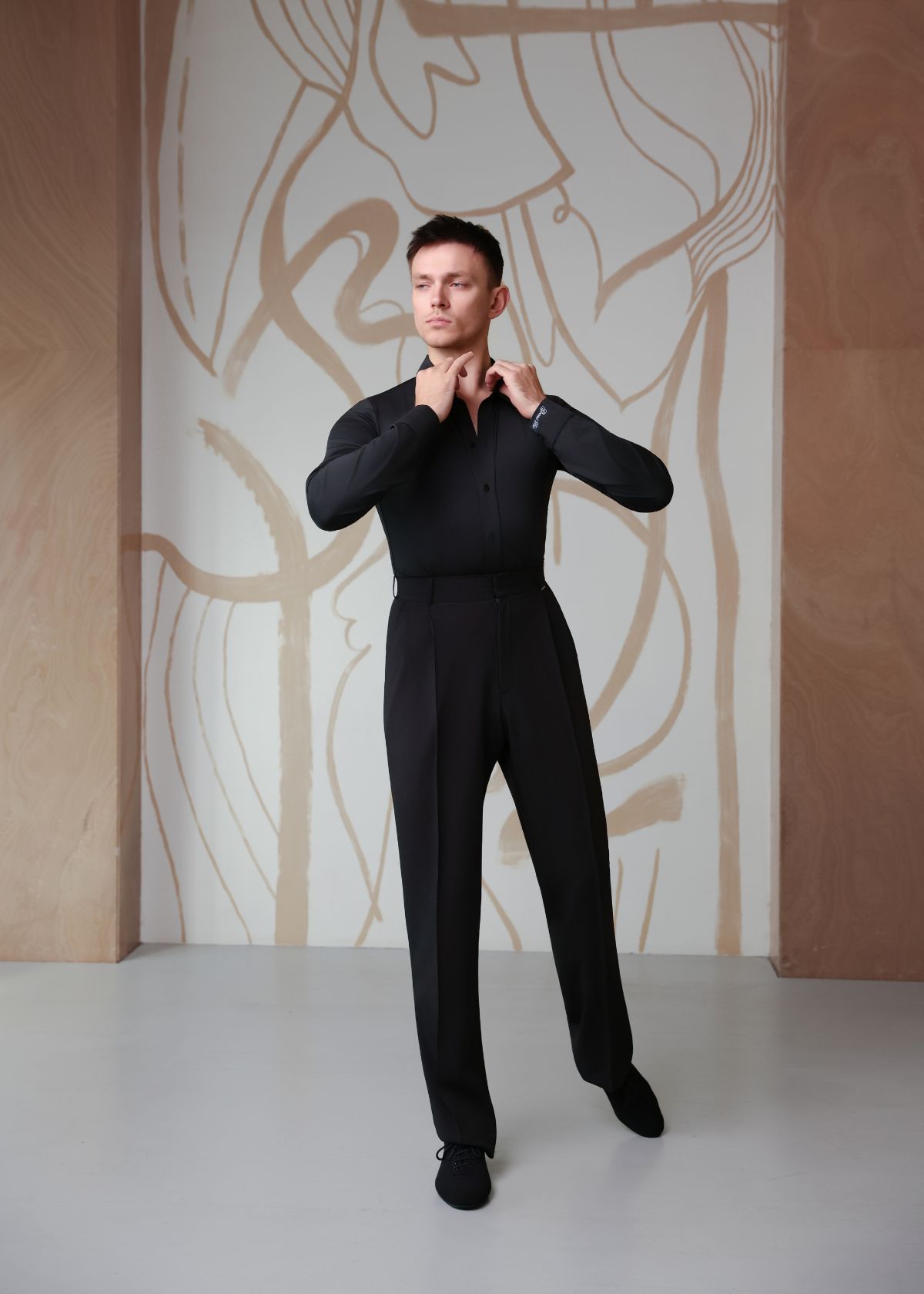 Рубашка BRYAN для латиныКлассическая мужская рубашка для тренировок и выступлений в латинской программе. Мягкий и эластичный материал обеспечивает идеальную посадку и свободу движений. Застёжка на пуговицы по центру, аккуратный воротник и длинный рукав — всё, что нужно для сценического образа.Материал:– 90% полиамид, 10% эластанДетали и крой:– приталенный силуэт– застёжка на пуговицы– длинный рукав– классический отложной воротникУход:– стирка при температуре до 30°C– не отбеливать– сушить в расправленном виде
