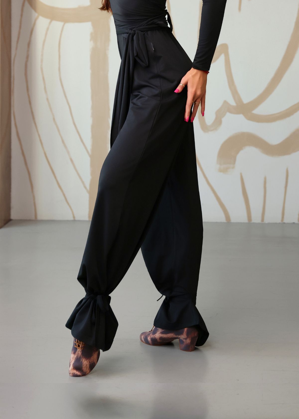 Широкие брюки ARYA — стильное решение для латинских танцев, тренировок или сценических выходов. Модель выполнена из эластичного микрополиамида, обеспечивающего комфорт и свободу движений. Посадка мягкая и удобная, пояс завязывается на бедре, позволяя регулировать объём и подчёркивать талию. Низ штанин оформлен оригинальными завязками, которые фиксируют силуэт и придают выразительность движениям во время танца. ARYA легко сочетается с укороченными топами, создавая яркие образы для репетиций и выступлений.Уход:Стирка вручную или в машинке на деликатном режиме при температуре до 30°C. Использовать мягкое моющее средство. При необходимости отпаривать при низкой температуре.