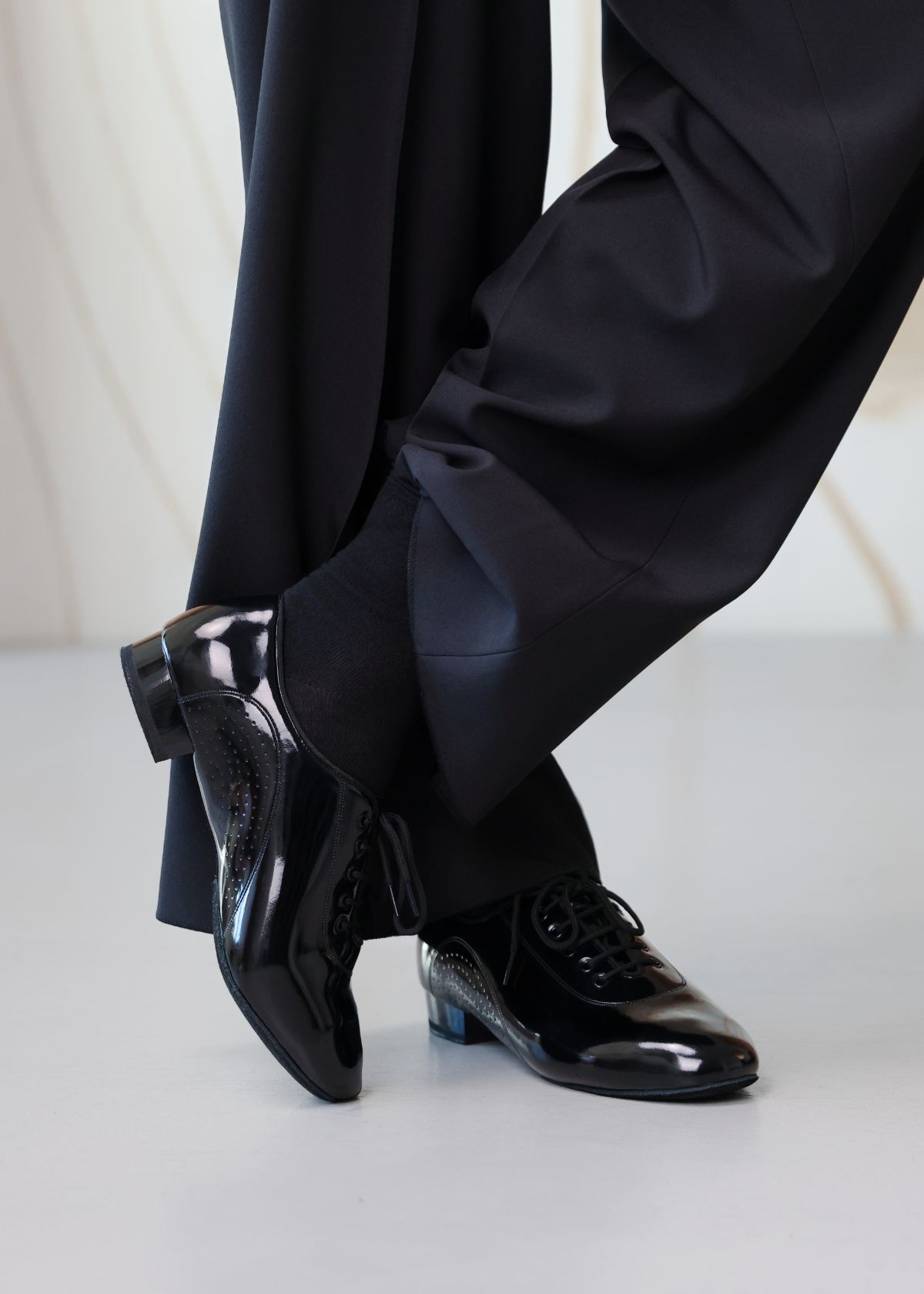 Мужские бальные туфли для стандарта HAMILTON МСт 309 – сочетание стиля, комфорта и функциональности. Идеальный выбор для профессиональных танцоров, стремящихся к стабильности и удобству во время сложных движений на паркете.Модель доступна в трёх вариантах:Лакированная кожа – для эффектного вида и лёгкого ухода.Текстиль Oxford – обеспечивает лёгкость и комфорт.Натуральная кожа – для классического стиля и долговечности.Основные акценты:Перфорация боковой части обеспечивает вентиляцию и комфорт.Шнуровка позволяет регулировать плотность посадки на стопе.Заниженная линия верхнего канта не давит на косточку, обеспечивая свободу движений.Длинный супинатор поддерживает подъём стопы, обеспечивая дополнительную устойчивость.Двойная набойка из микропоры и спилка улучшает амортизацию.Высота каблука 2 см – оптимальна для комфорта и баланса.Мягкая латексная стелька добавляет комфорта при длительном ношении.Подкладка из текстильного материала поглощает влагу и уменьшает скольжение стопы.Подошва из спилка обеспечивает надёжное сцепление с паркетом.Уход:Для сохранения внешнего вида и функциональности рекомендуется чистка мягкой щёткой или салфеткой. Лакированные модели следует полировать специальными средствами. Хранить в сухом месте, избегая повышенной влажности.HAMILTON МСт 309 – это уверенность в каждом движении на паркете!