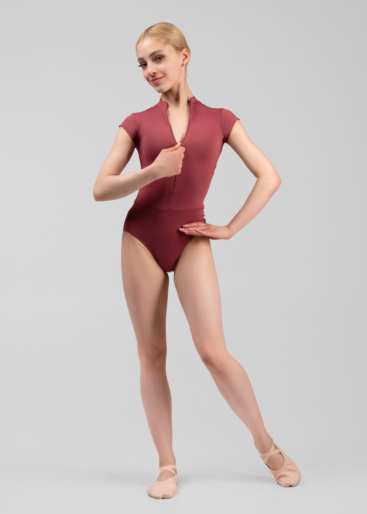 Купальник с коротким рукавом JESSICA из коллекции LE SECRET — это модель, которая сочетает минималистичный крой и функциональность. Выполнен из премиального нейлона, обеспечивающего плотность, эластичность и долговечность, он сохраняет форму даже при активных тренировках.Спереди — высокий воротник с потайной молнией, формирующий аккуратный силуэт. Анатомические линии визуально вытягивают корпус и подчёркивают посадку.Спинка из сетки в тон основной ткани — главный акцент модели, подчёркивающий линии корпуса и придающий образу лёгкость без лишней откровенности. Такой дизайн сочетает комфорт и выразительность, обеспечивает свободу движений и делает купальник удобным для тренировок и эффектным на сцене.Низ скроен анатомически — плотно прилегает и не образует заломов в области бёдер и ягодиц.Коллекция LE SECRET включает 8 моделей в 7 оттенках. Все изделия выполнены из премиального нейлона и новой эластичной сетки, что гарантирует профессиональную посадку и комфорт. Купальники легко сочетаются с юбками, хитонами, шортами и разминочной одеждой.Уход: ручная или деликатная стирка в прохладной воде (до 30°C). Не использовать отбеливатель. Не выкручивать. Сушить в расправленном виде. Допускается деликатное отпаривание.