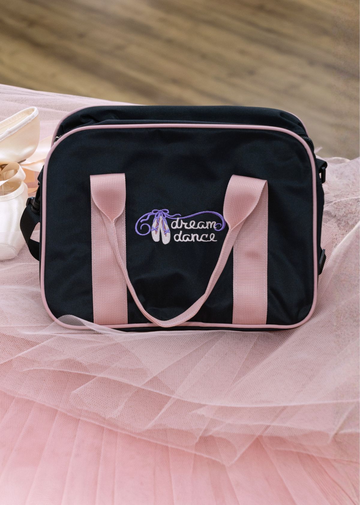 Балетная сумка Dream DanceКомпактная и удобная сумка, созданная специально для юных балерин. Вышивка с пуантами и надписью "Dream Dance" придает изделию нежность и изысканность. Основное отделение застегивается на молнию и достаточно вместительное для купальника, сменной обуви и аксессуаров. Сумка оснащена двумя короткими ручками и съемным длинным ремнём для ношения в руке или на плече.Материал: полиэстер